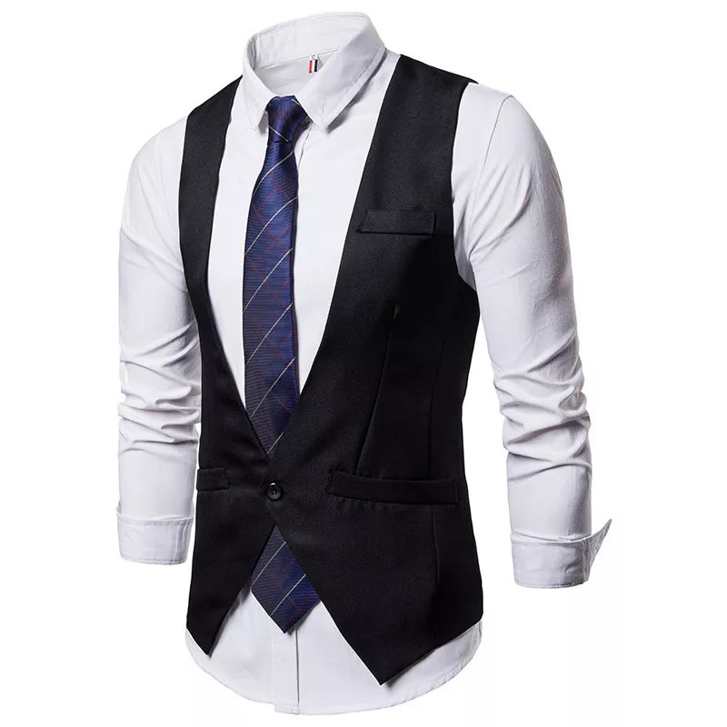Fashion Male Suit Vest Single Row One Grain Buckle Men