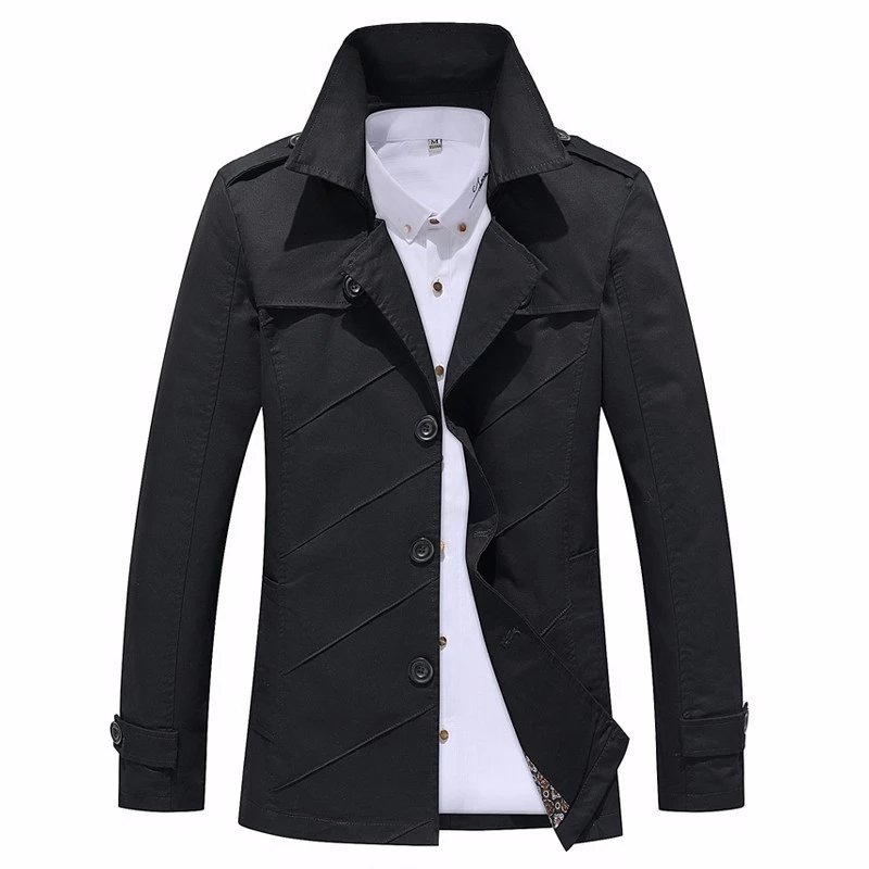 menslim-business-lapel-medium-longsolid-windbreaker-jacket